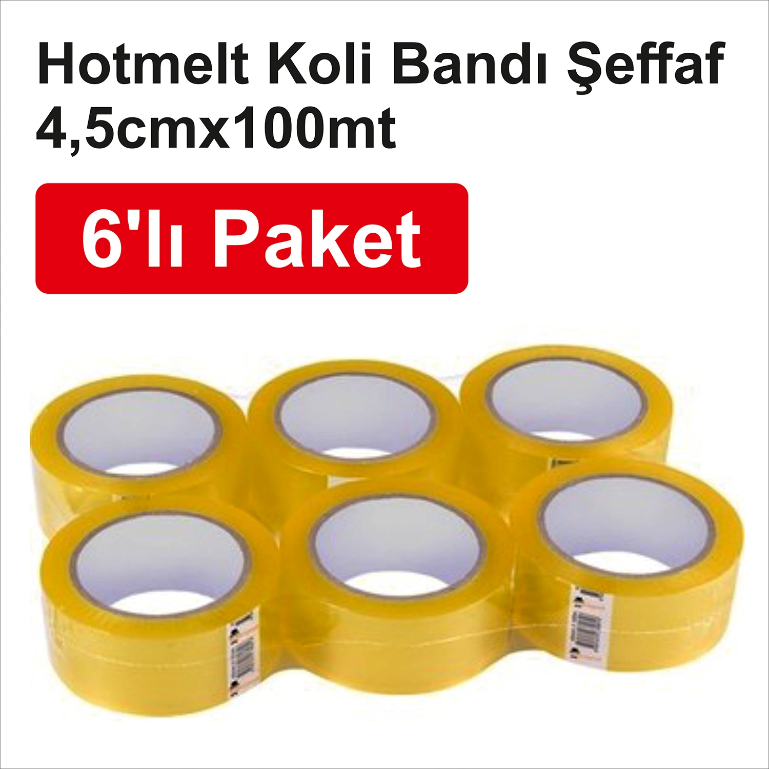 Holtmelt Koli Bandı Şeffaf 4,5 cm × 100 mt (6’lı Paket)